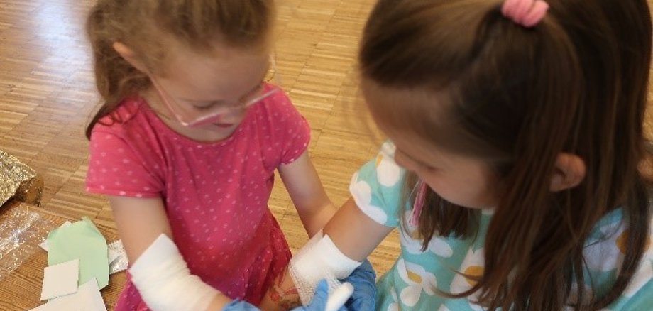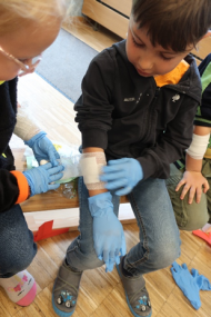 Neu in der Kita Liebenau war dieses Jahr erstmals eine kindgerechte Schulung in Form eines Helfi- Kurses, bei dem die Kinder erfahren konnten, was sie bei kleineren Notfällen selbst unternehmen können.