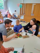 Beim Eltern-Zeit-Fest konnten die Kinder mit ihren Eltern kreativ werden: Es wurde gemalt, gestaltet und gelacht- dabei sind wunderschöne, ganz persönliche Leinwände entstanden. Außerdem konnten gemeinsame Fotos als Erinnerung geschossen werden.